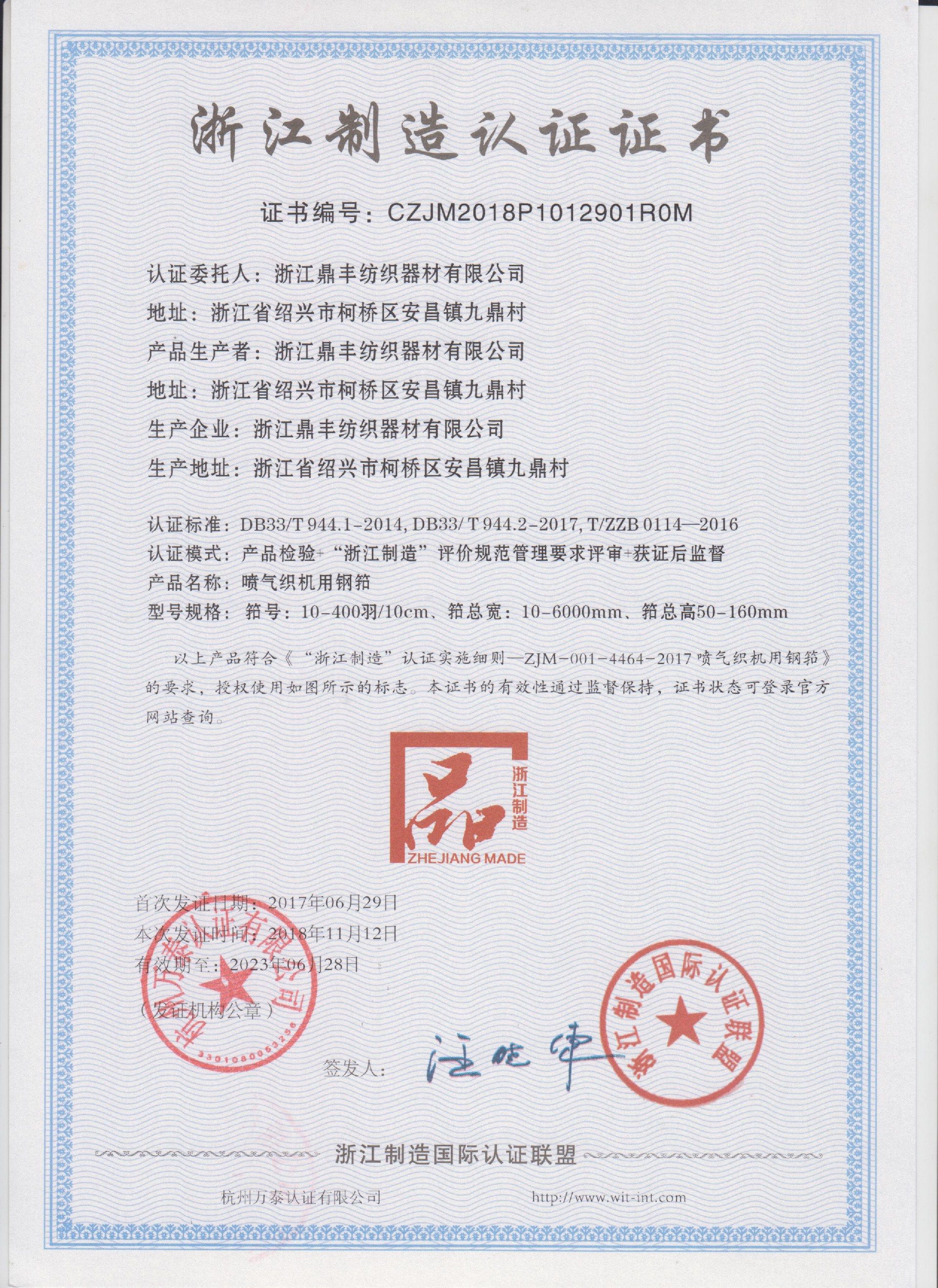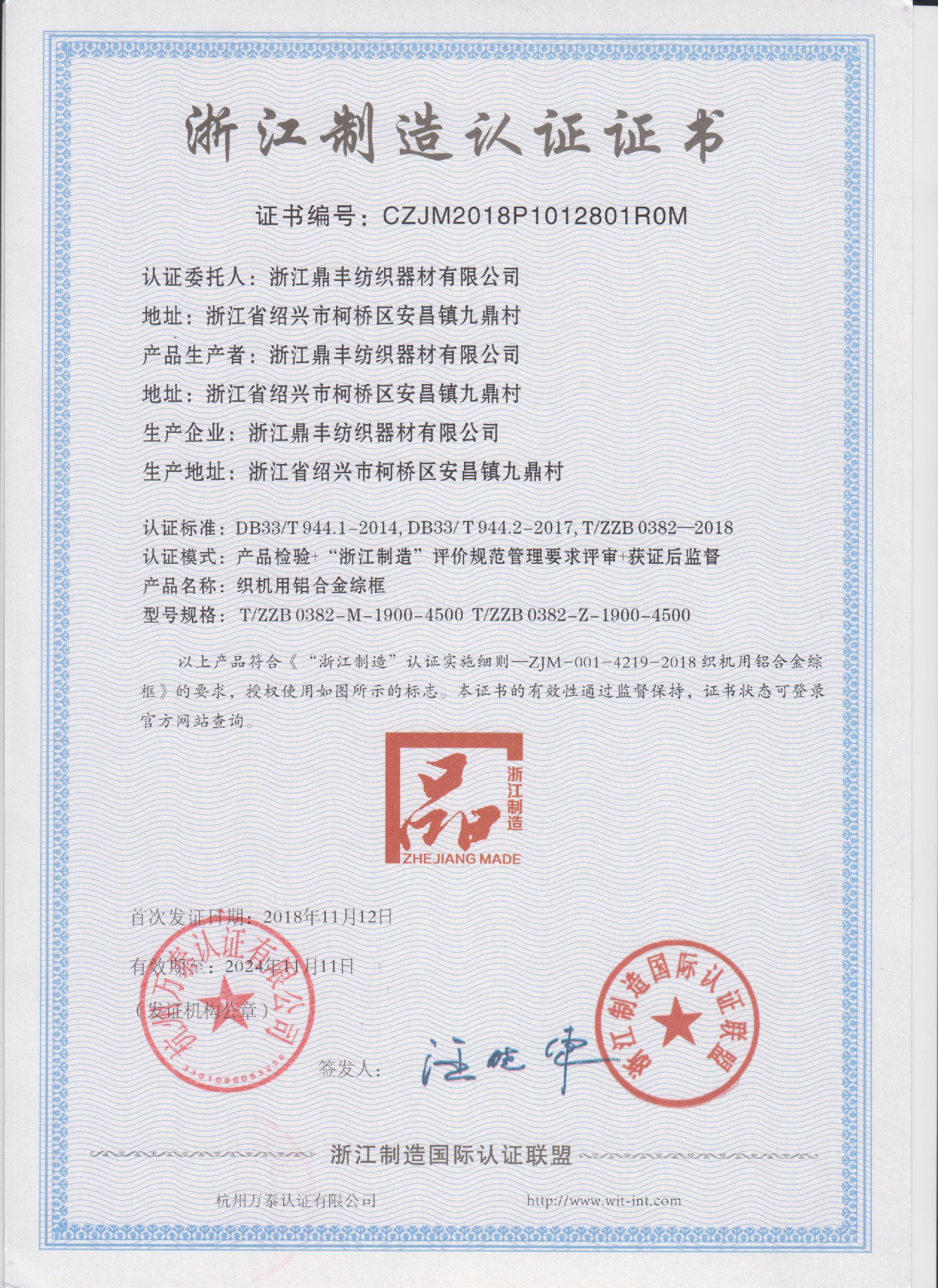 公司現(xiàn)有固定資產(chǎn)6000余萬元,員工300余人,現(xiàn)具有年產(chǎn)噴氣異型筘12萬米,劍桿筘32萬米,噴水筘5萬米,綜框20萬片,鋼片綜2億片,停經(jīng)片1.5億片, 織軸1.2萬套的生產(chǎn)能力。公司“越泉”商標(biāo)被評(píng)為“中國(guó)馳名商標(biāo)”。公司通過ISO9001 :2015國(guó)際質(zhì)量體系認(rèn)證,ISO14001:2015國(guó)際環(huán)境管理體系認(rèn)證,ISO45001:2018國(guó)際職業(yè)健康安全管理體系認(rèn)證,噴氣織機(jī)用鋼筘和織機(jī)用鋁合金綜框獲得“浙江制造”品牌認(rèn)證,公司擁有自營(yíng)進(jìn)出口權(quán),產(chǎn)品暢銷全國(guó)并遠(yuǎn)銷印度、巴基斯坦、土耳其、埃及、哥倫比亞、意大利等國(guó)家和地區(qū)。
